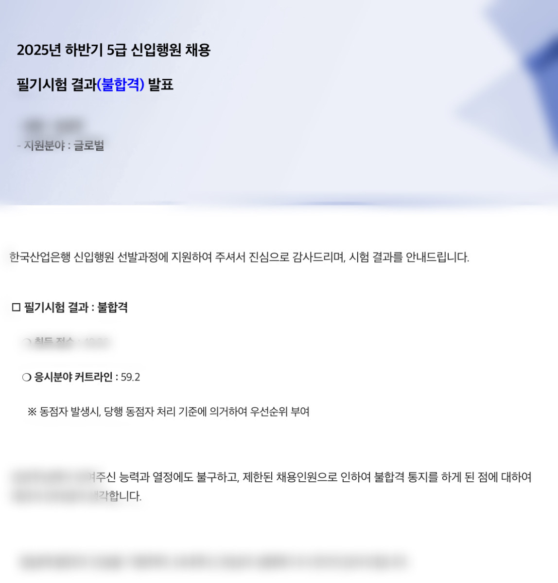 2025.4.19. 실시된 산업은행 5급 행원 공채 글로벌 전형 시험에 응시했었다.