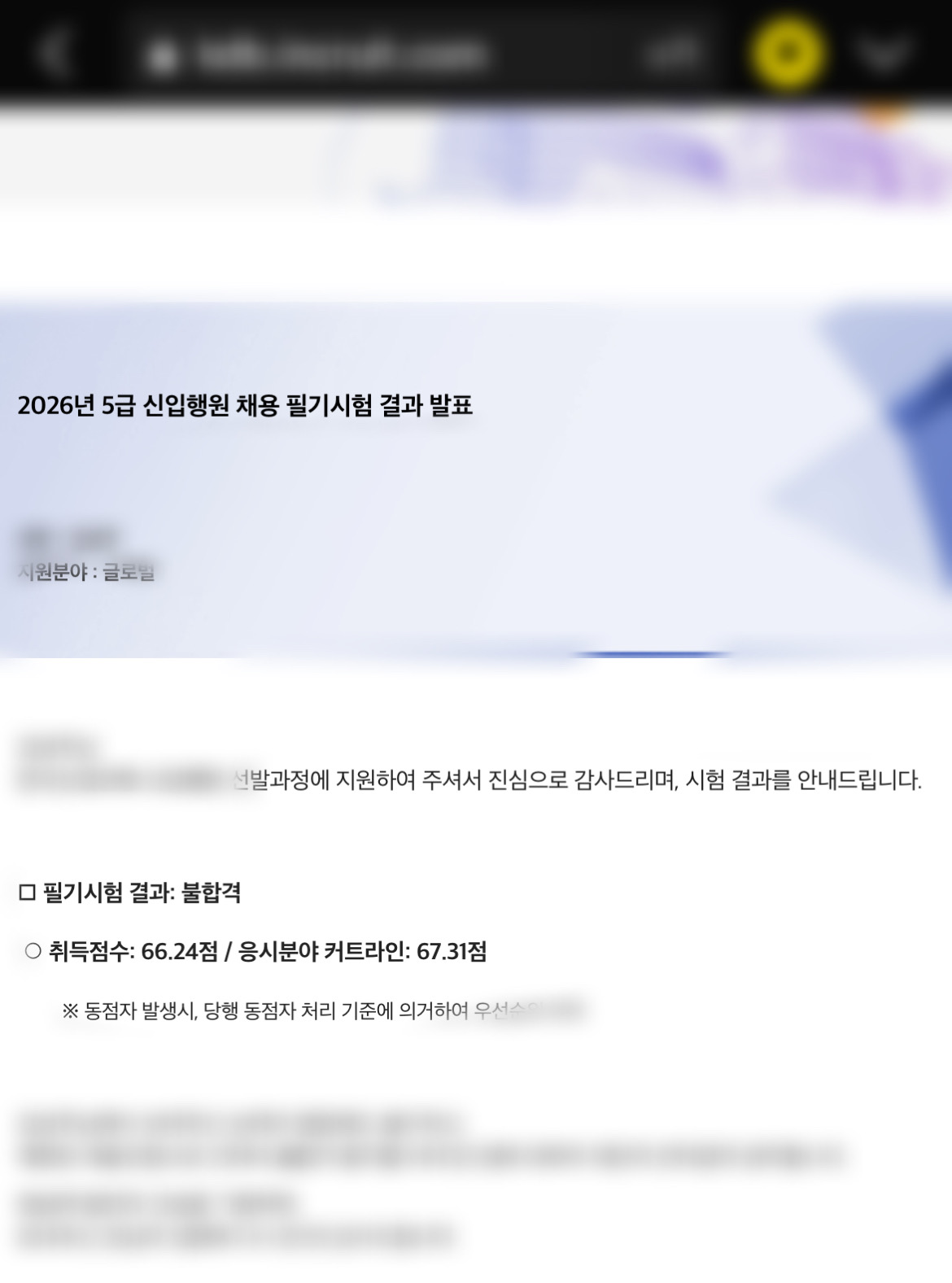 응시자 약 50여명 중에 12등컷이 67.31점인듯하다